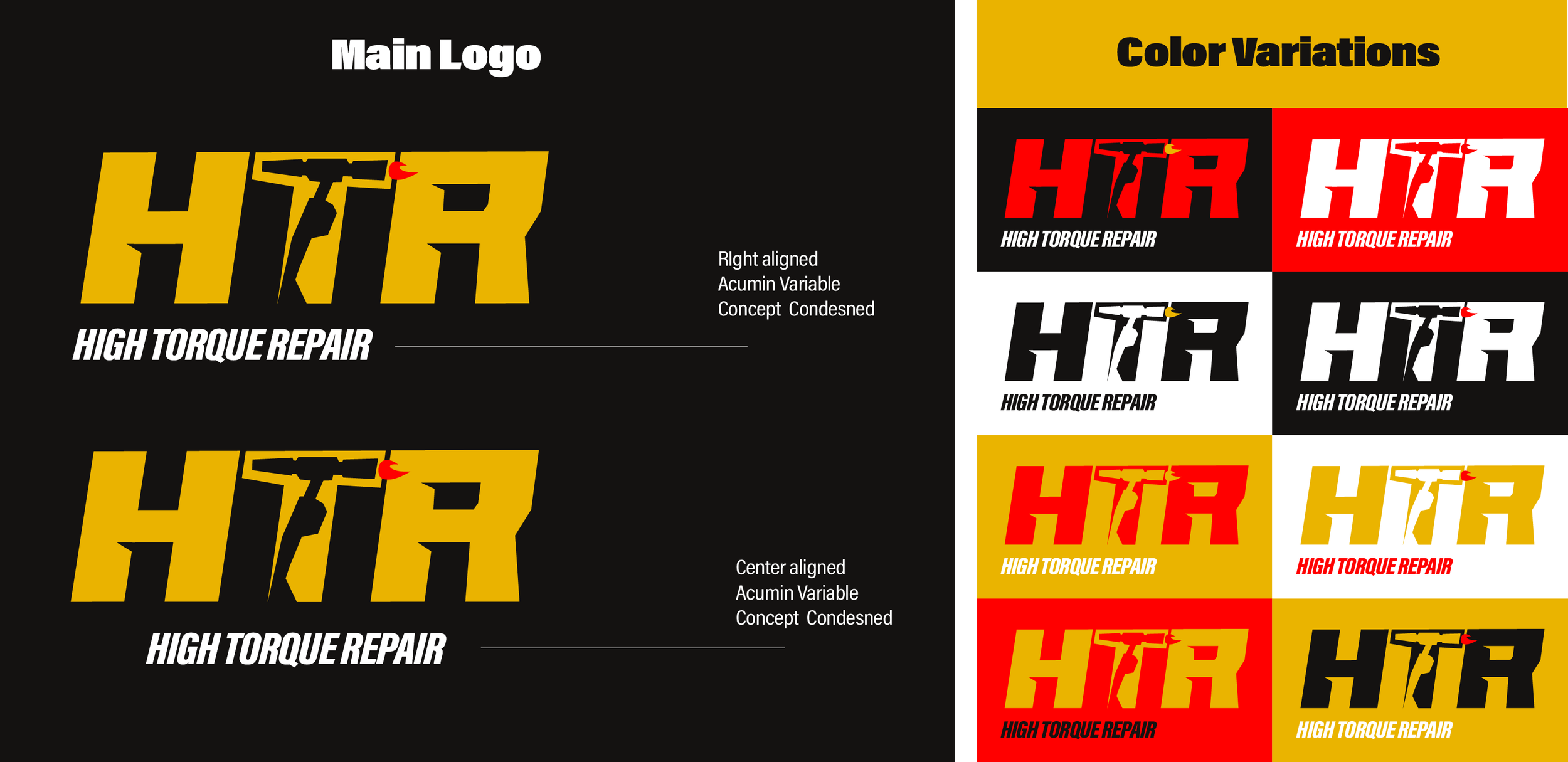 In the process of conceiving the logo concept, I explored various iterations, experimenting with different forms of iconography commonly associated with welding and metalwork. The overarching goal was to craft a type-based logo that possessed both distinctiveness and ease of reproducibility. Among the symbols considered, I zeroed in on the acetylene torch, a pivotal tool wielded by HTR's welders. Additionally, my research revealed that this torch icon was less frequently employed by other companies compared to the conventional welding mask symbols. For the final logo, I opted for a hand-drawn italic font, injecting a unique touch by incorporating notches into the typography that subtly echoed the appearance of steel beams. To maintain brand consistency, I selected the Acumen variable concept as the font system. This choice was guided by the font's versatility, enabling the utilization of various weights to foster a cohesive and harmonious brand identity across diverse applications.